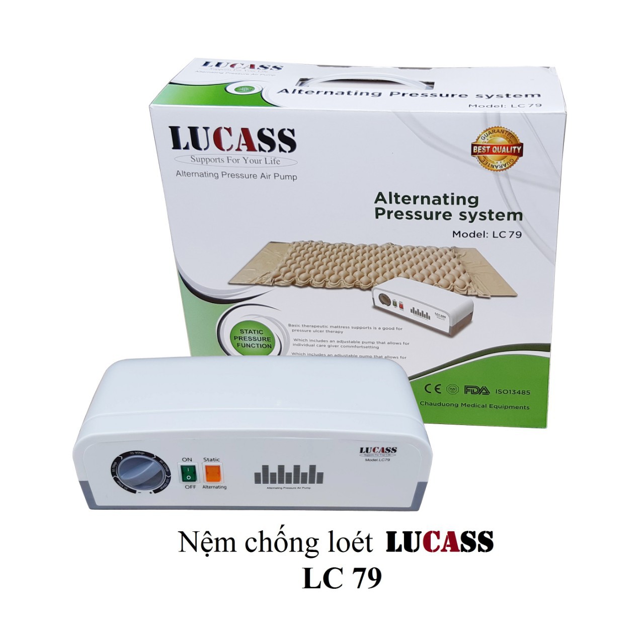 Bộ sản phẩm bao gồm: máy bơm hơi, đệm chống loét.