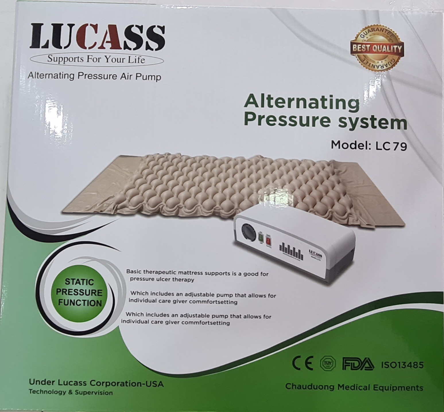 Nệm hơi chống loét LC-79 được làm từ chất liệu vải polymer, mùa đông nằm không khô ráp,mùa hè nằm không đổ mồ hôi với công nghệ tiên tiến đến từ Mỹ. Đệm khí dễ dàng giặt sạch và phơi khô không lo bị sờn rách. Đi kèm đệm khí là bộ điều khiển thông minh rất dễ sử dụng đối với trẻ nhỏ và người già. Đặc biệt,máy sử dụng công suất nhỏ nên chạy với tiếng ồn thấp,không gây tiếng động lớn ngay cả khi bơm hơi lẫn xả hơi vào ban đêm.