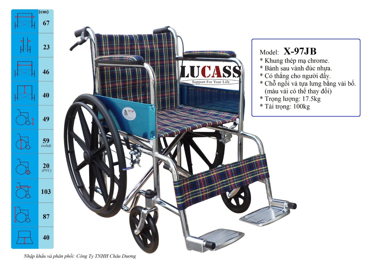 Xe lăn bánh mâm thắng tay X-97JB (vải caro)