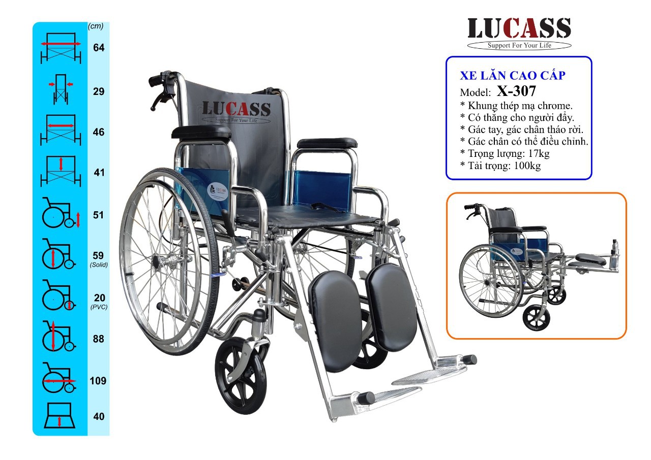 Xe lăn vải simili bánh căm X-307 (thắng tay, gác chân rời)