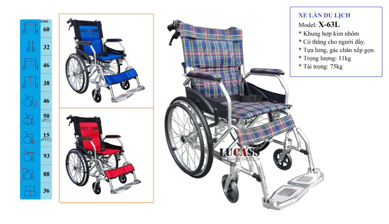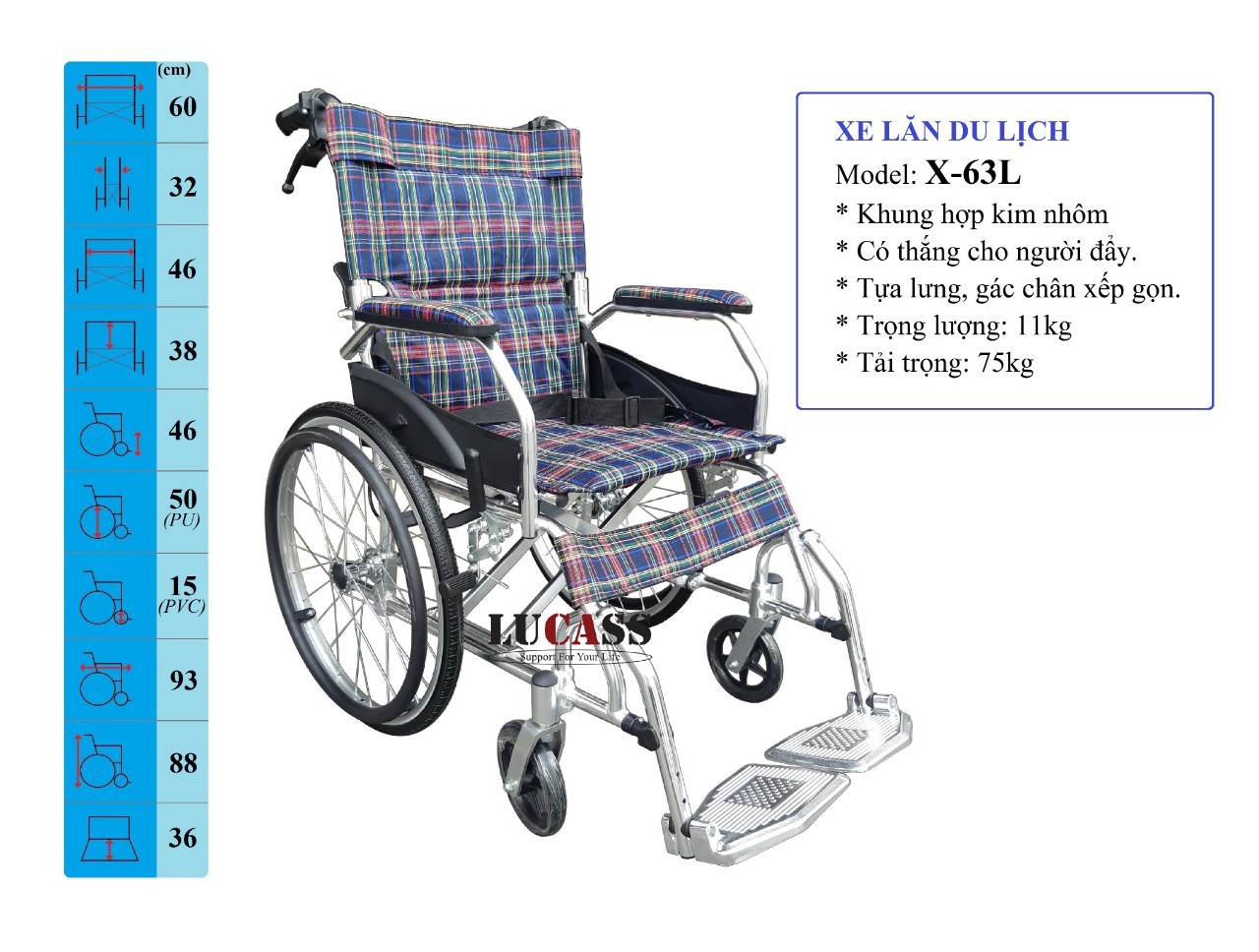 Xe lăn nhôm du lịch bánh căm Lucass X-63L
