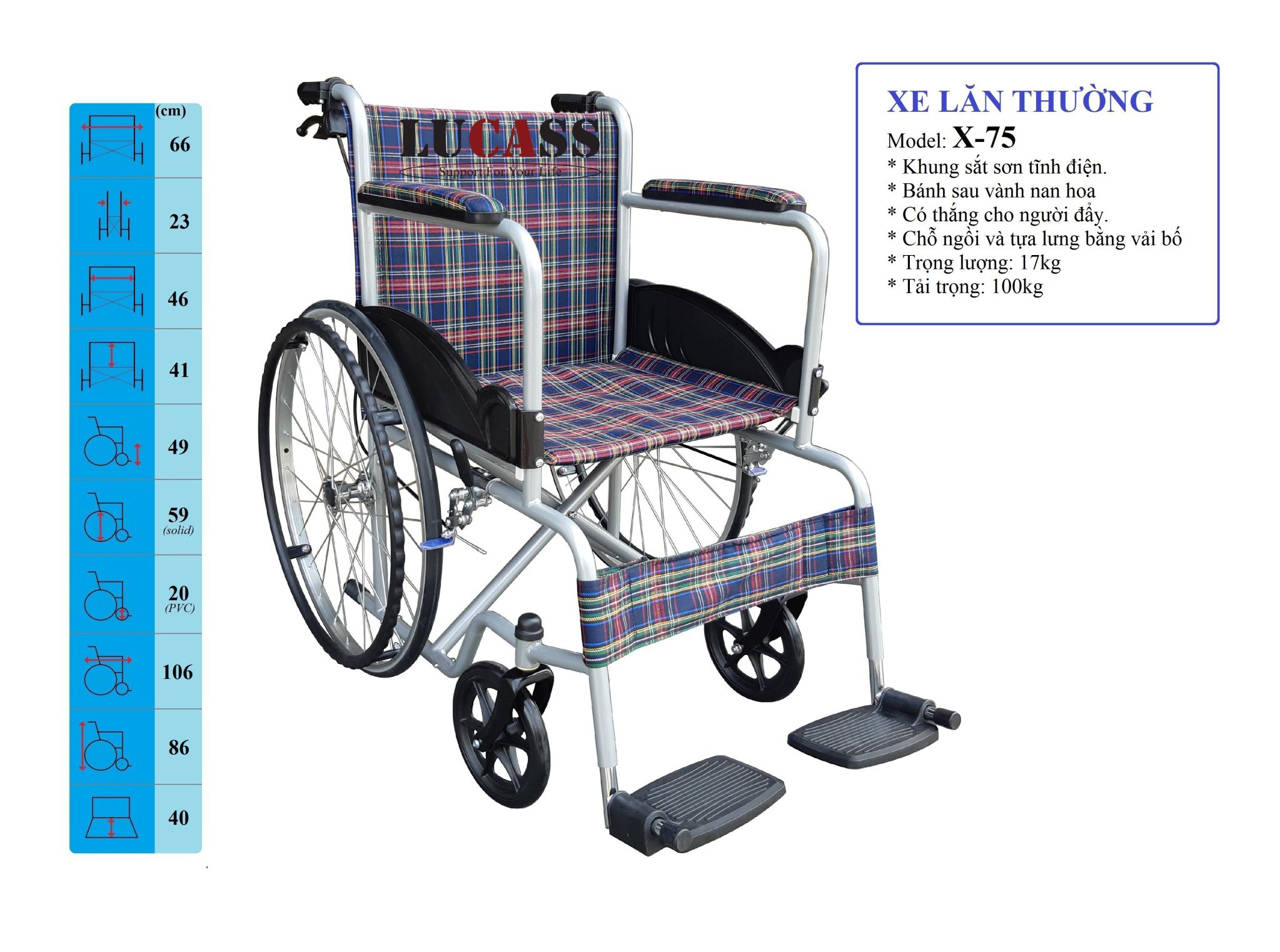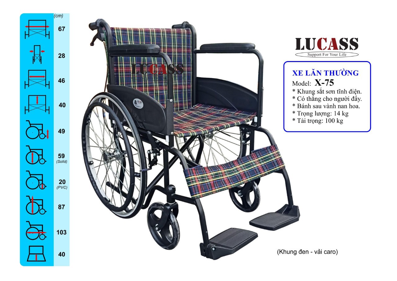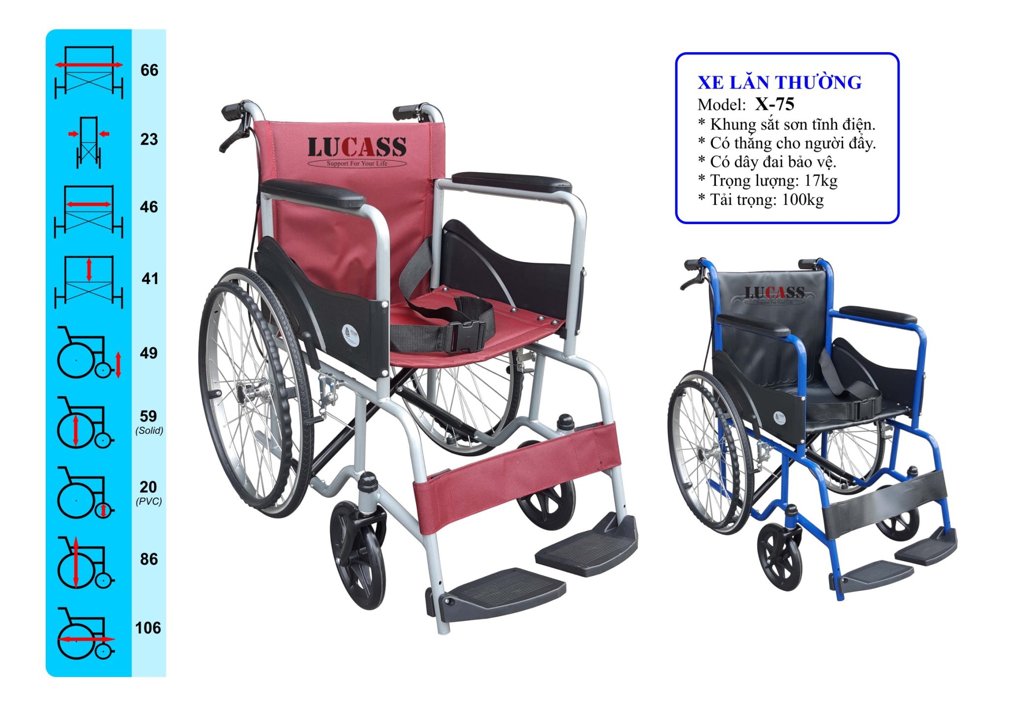 Xe lăn sơn tĩnh điện bánh căm Lucass X-75 (có thắng tay)